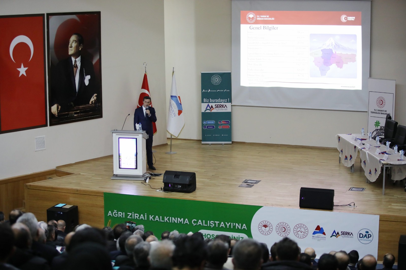 Serhat Kalkınma Ajansı (SERKA) koordinasyonunda, Ağrı İbrahim Çeçen Üniversitesi ev sahipliğinde; Ağrı’nın tarımsal potansiyelinin geliştirilmesi ve sürdürülebilir üretim modellerinin ele alınması amacıyla “Ağrı Zirai Kalkınma Çalıştayı” düzenlendi.